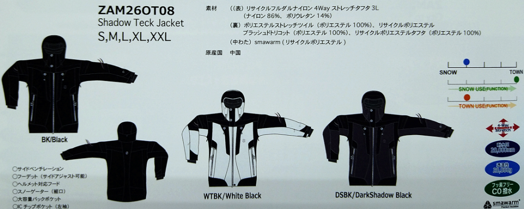 3)ZAM26OTo8 Shadow Teck Jacket ¥99,000