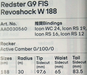 NEW 5)- A ATOMIC G9 FIS Revoshock W 188 スキー単体