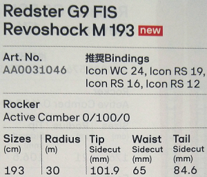 NEW 4)- A ATOMIC G9 FIS Revoshock M 193 スキー単体