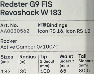 NEW 6)- B ATOMIC G9 FIS Revoshock W 183 + Icon RS 16 ¥60,500