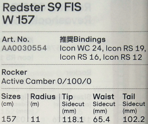 NEW 12)- C ATOMIC S9 FIS W 157 + Icon RS 12 ¥55,000