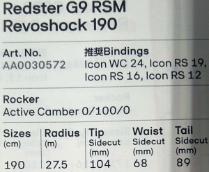 NEW 7)- A ATOMIC G9 RSM Revoshock 190 スキー単体