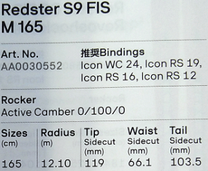NEW 11)- B ATOMIC S9 FIS M 165 + Icon RS 16 ¥60,500