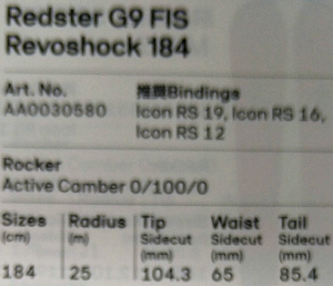 NEW 16)- A ATOMIC G9 FIS Revoshock 184 スキー単体